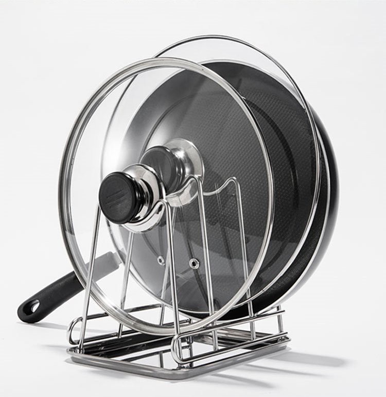 With its smooth lines and its graceful curves, the stainless steel pot cover holder makes for a neat and fresh kitchen.