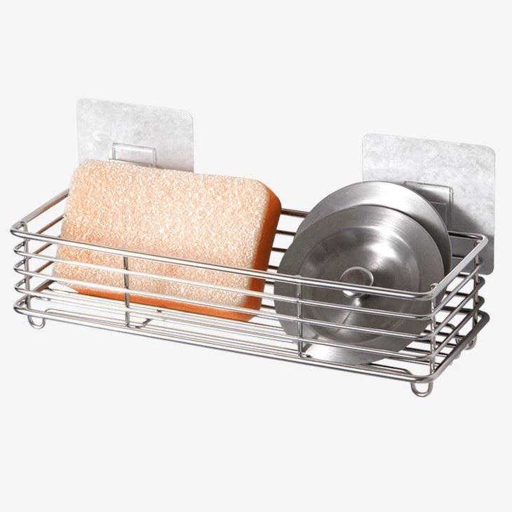 There are 2 ways to hold the kitchen sponge storage. Place it on the countertop or hung it on the wall with strong transparent adhesive hooks.